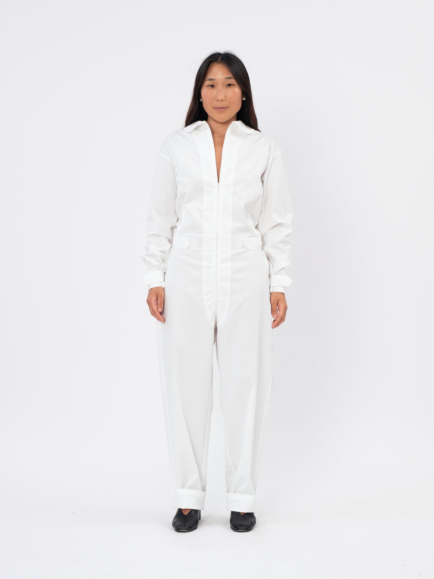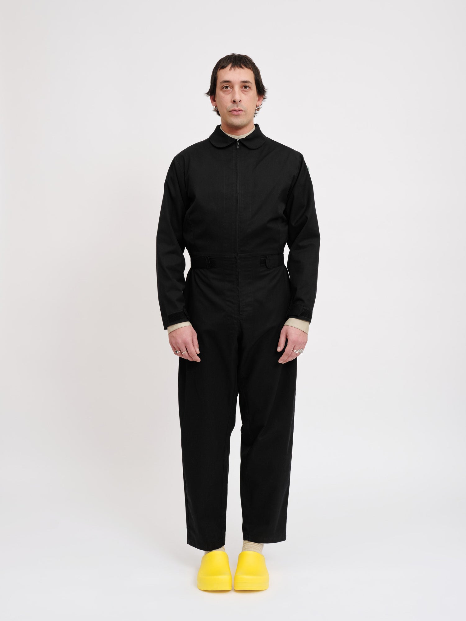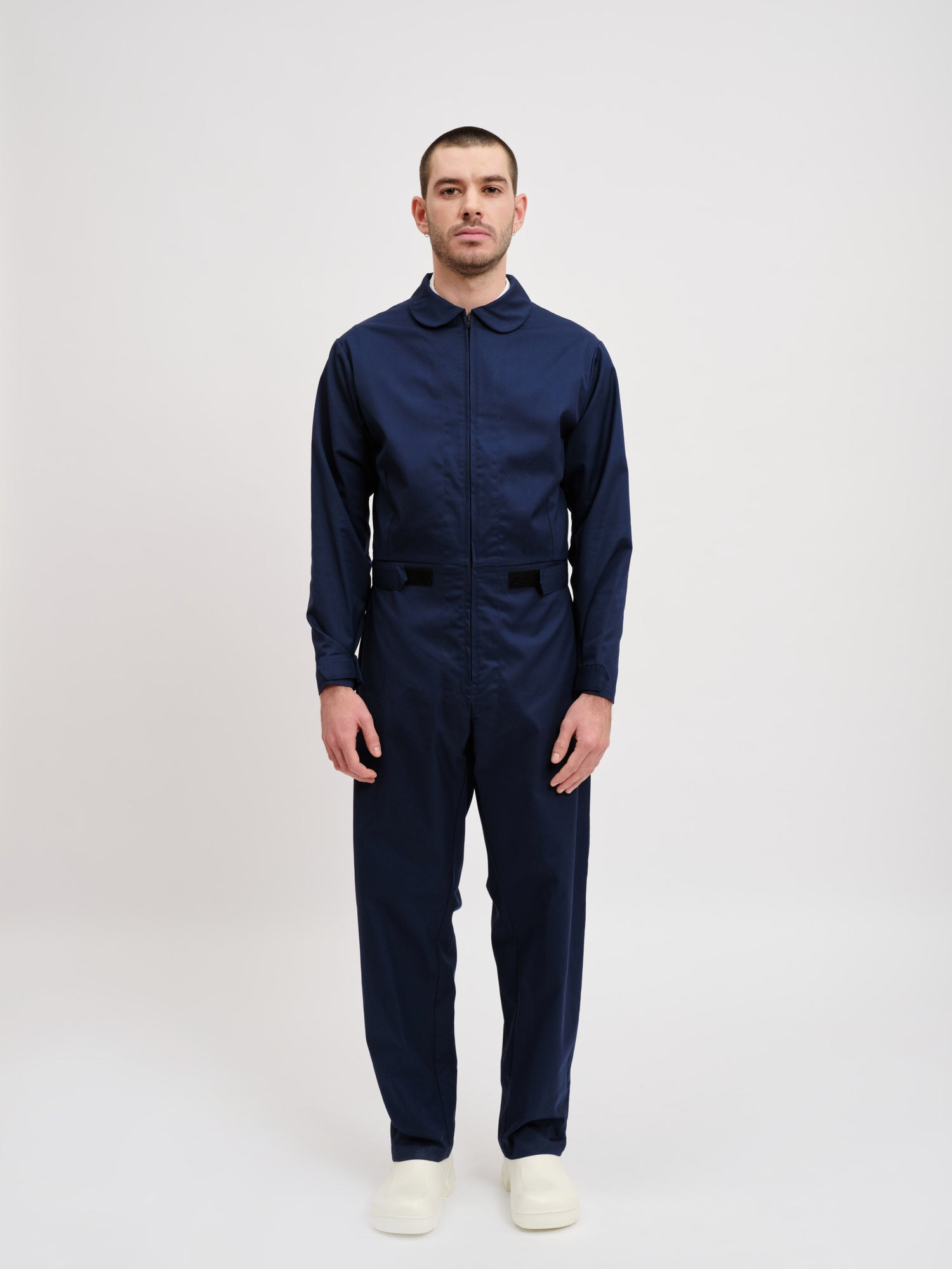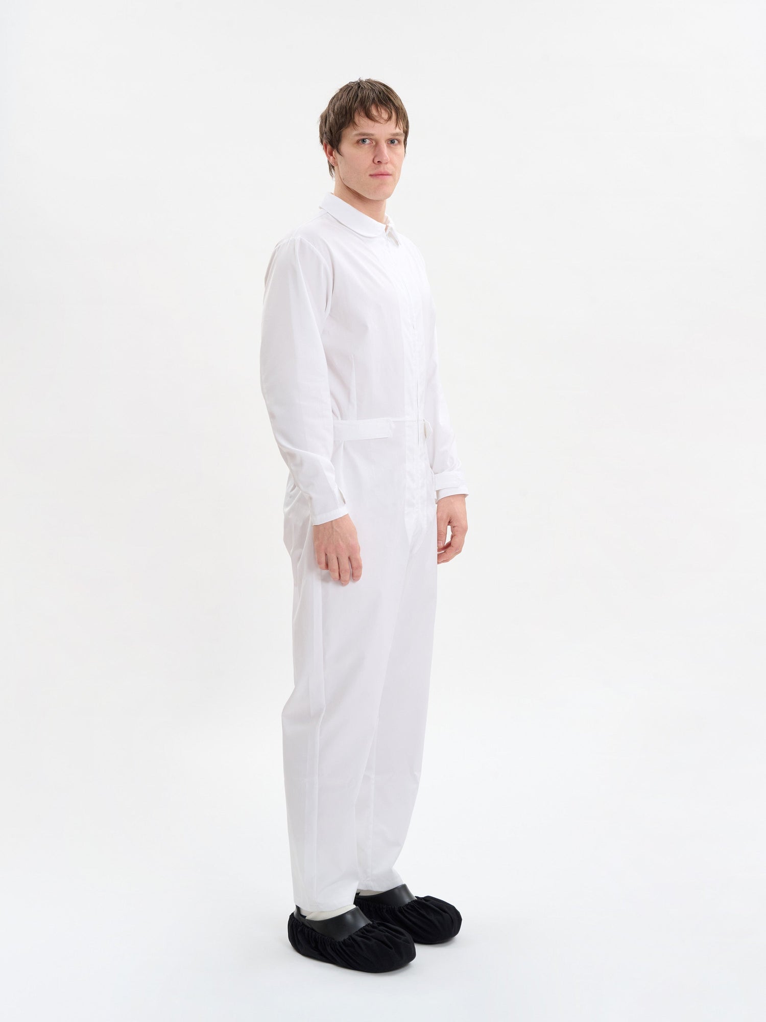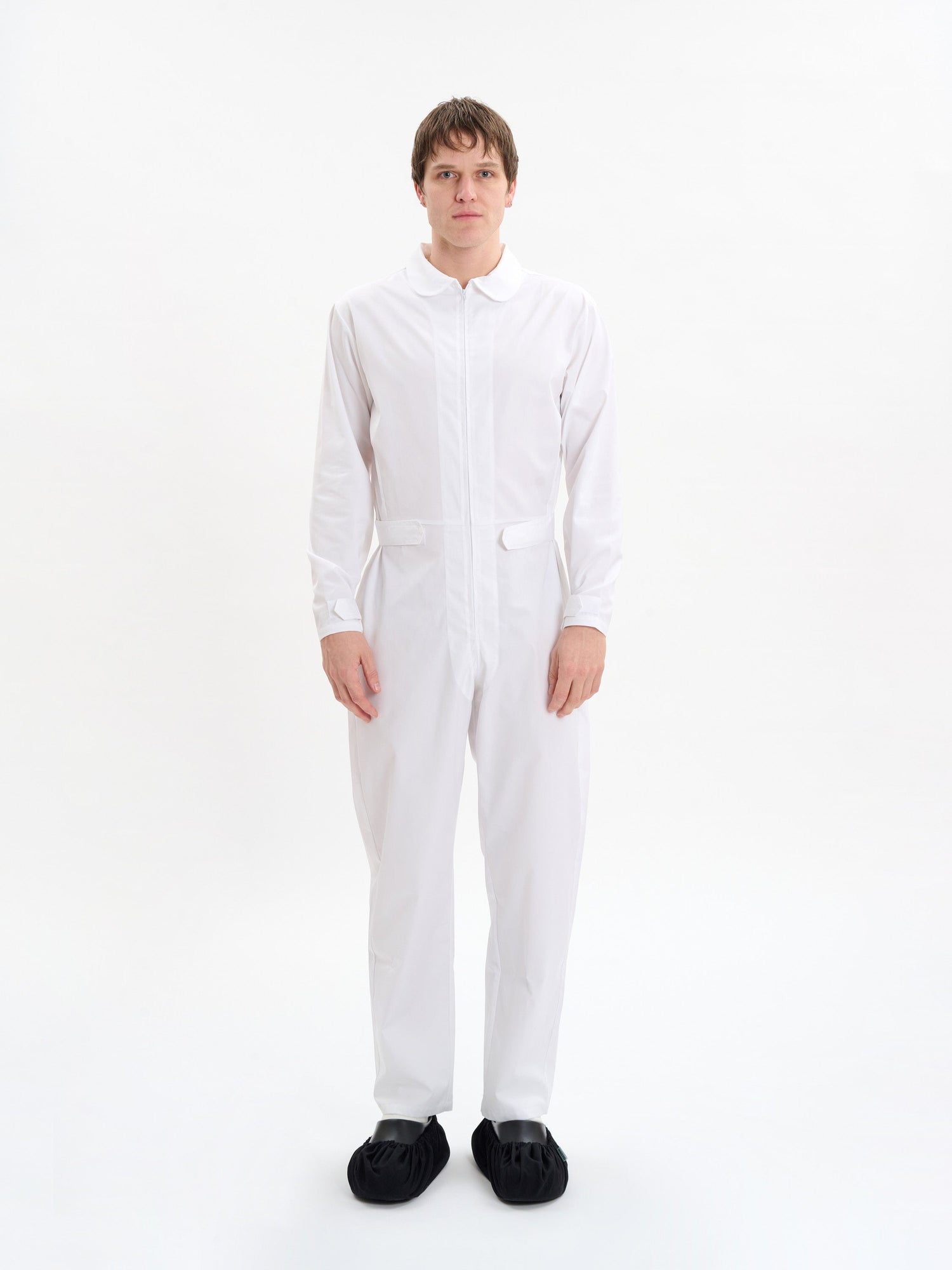 Unisex jumpsuit with zip fastenings at the chest,