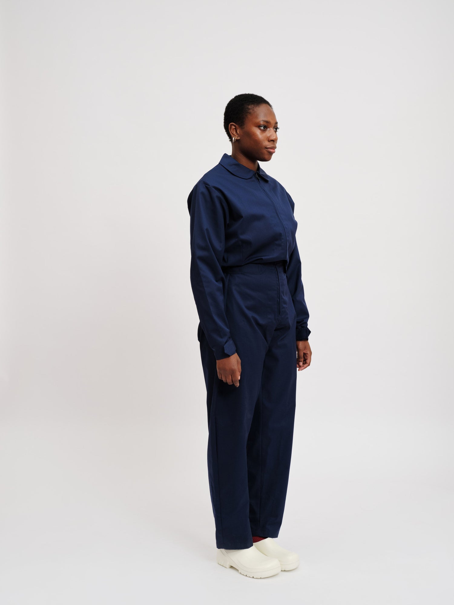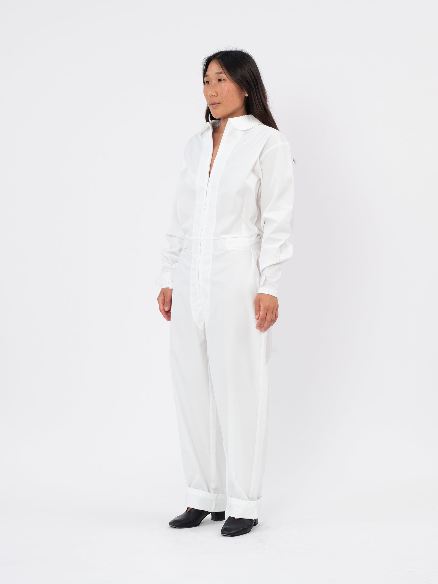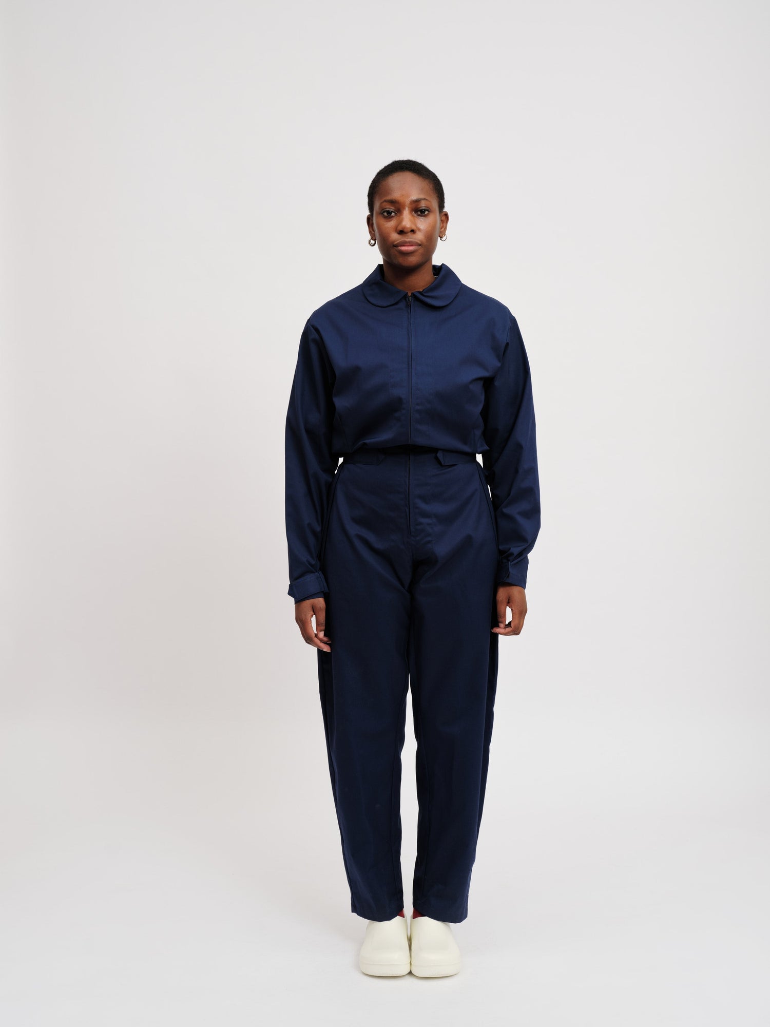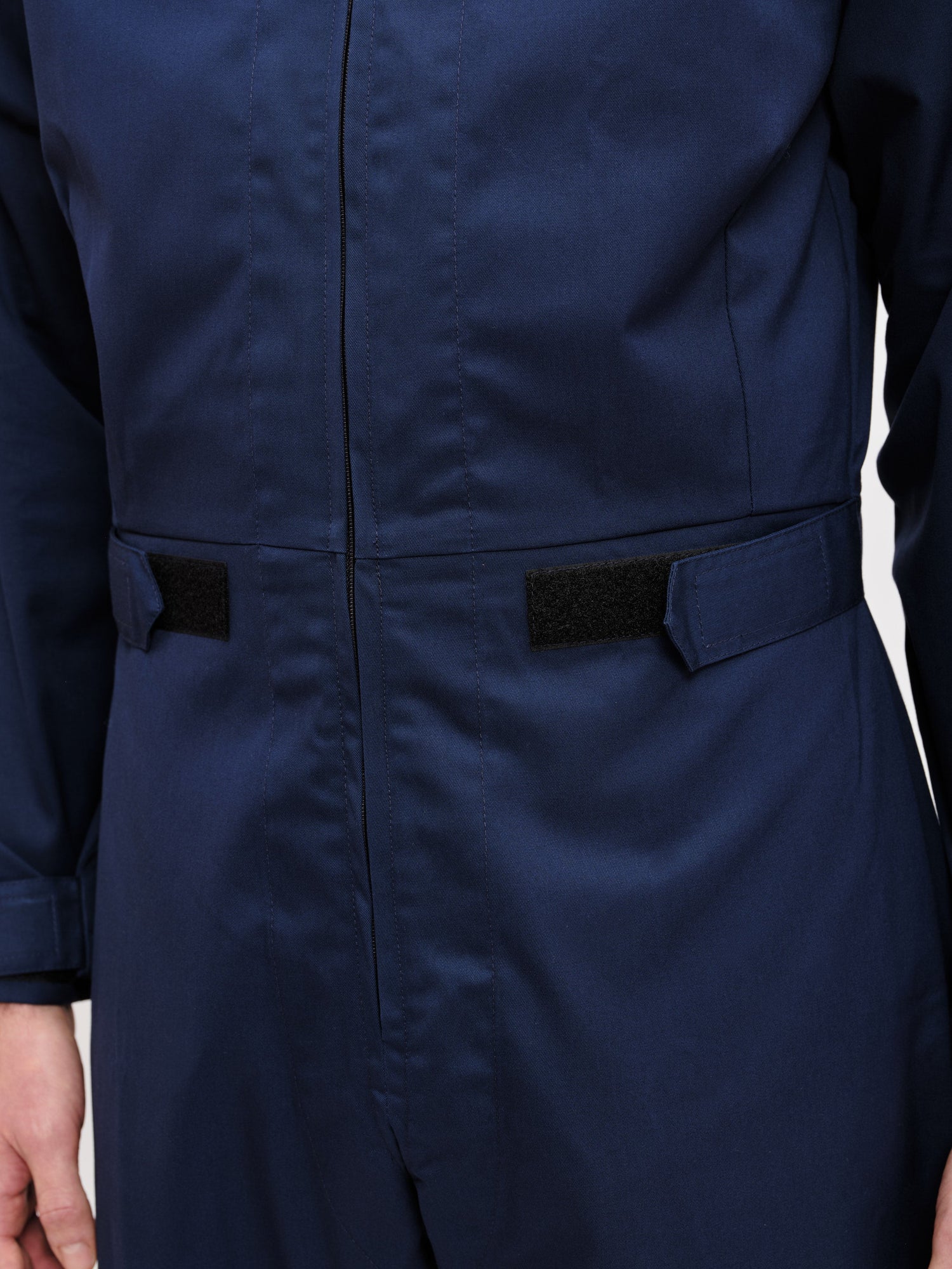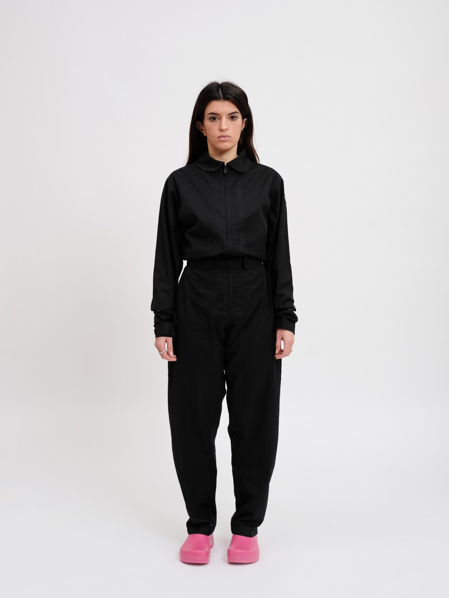 Unisex jumpsuit with zip fastenings at the chest,